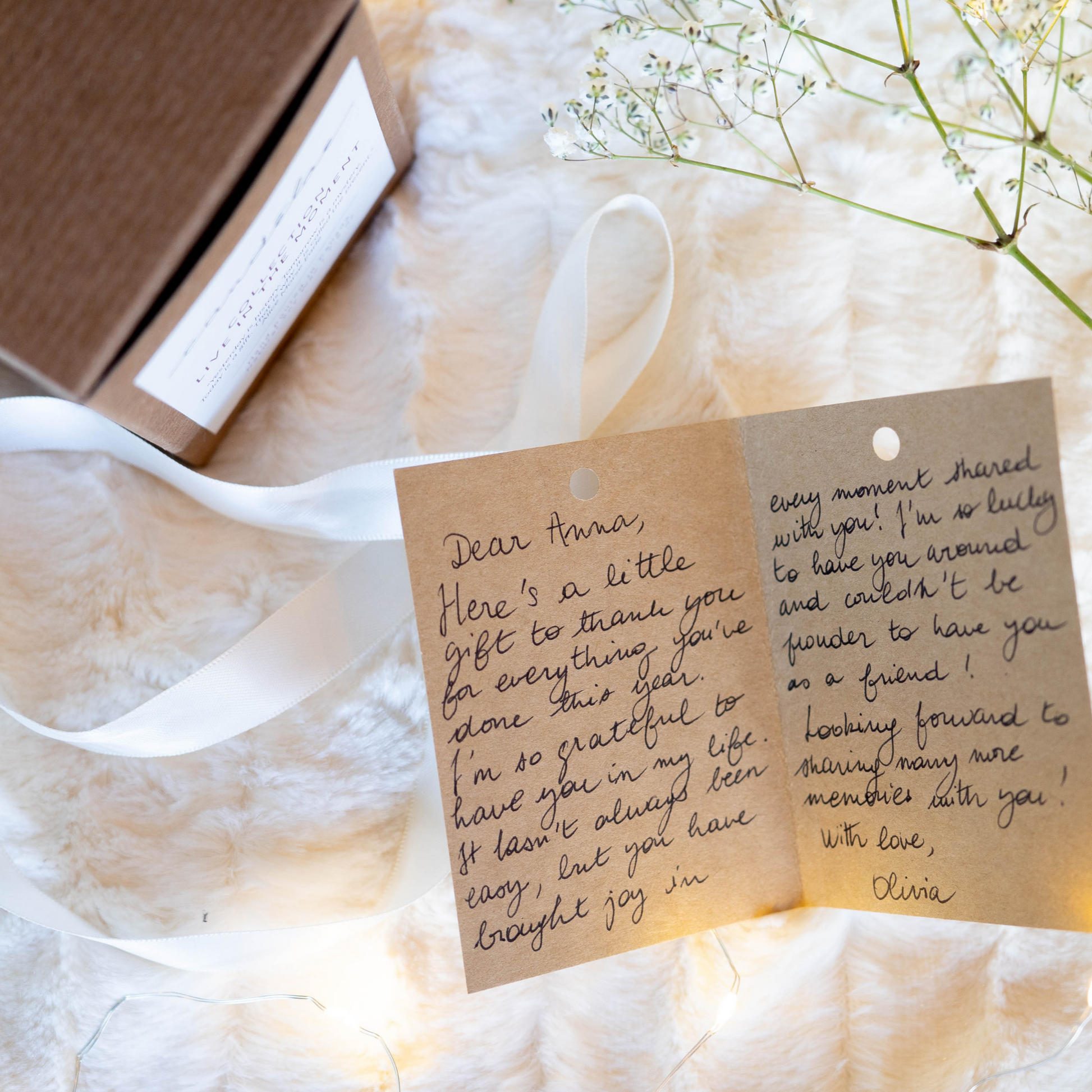 Add a note that we handwrite on your behalf, or an audio or video message that you record and we attach to the candle via a QR Code.